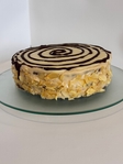 Веганський «Естерхазі» — це витончений горіховий торт із насиченим, благородним смаком. Коржі на основі волоського горіха та мигдалю поєднуються з ніжним кремом із кокосового та мигдалевого молока, створюючи багатий і гармонійний баланс текстур.У смаку відчувається глибока горіхова основа, легка солодкість ерітрітолу та тонкі шоколадні ноти завдяки білому й чорному веганському шоколаду. Абрикос додає делікатну фруктову кислинку, яка підкреслює класичний характер десерту.